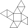 An jeder Ecke treffen ein Dreieck und drei Quadrate aufeinander.