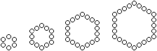 Man gibt vier sechseckige Rahmen aus Kugeln vor mit den