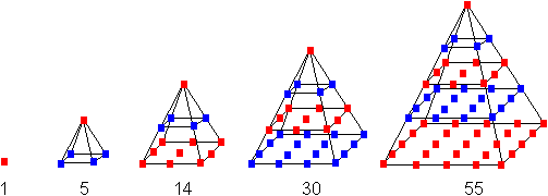 > in der 3. Spalte die Folge der Tetraederzahlen,