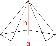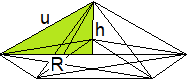 Es gilt u = sqrt(R²+h²) = (1/10)sqrt[(50a²+10sqrt(5)a²+100h²].
