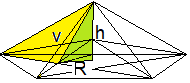 Es gilt v = sqrt(R'²+h²) = (1/5)sqrt[25a²-10sqrt(5)a²+25h²].